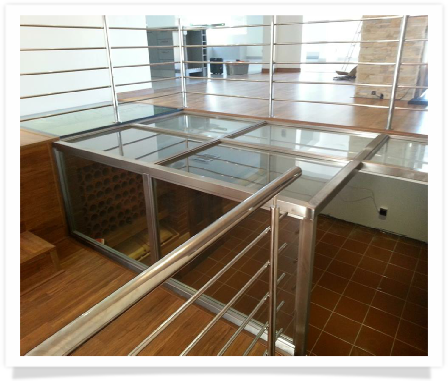 Stainless Steel's is both practical and hard wearing and therefore ensuring an exclusive result which requires no coating to protect it compared to mild steel. Mild steel must be protected by means of powder-coating / galvanising else it will corrode. Stainless Steel is maintenance free and looks exclusive with any other materials and finishes, including but not limited to glass.